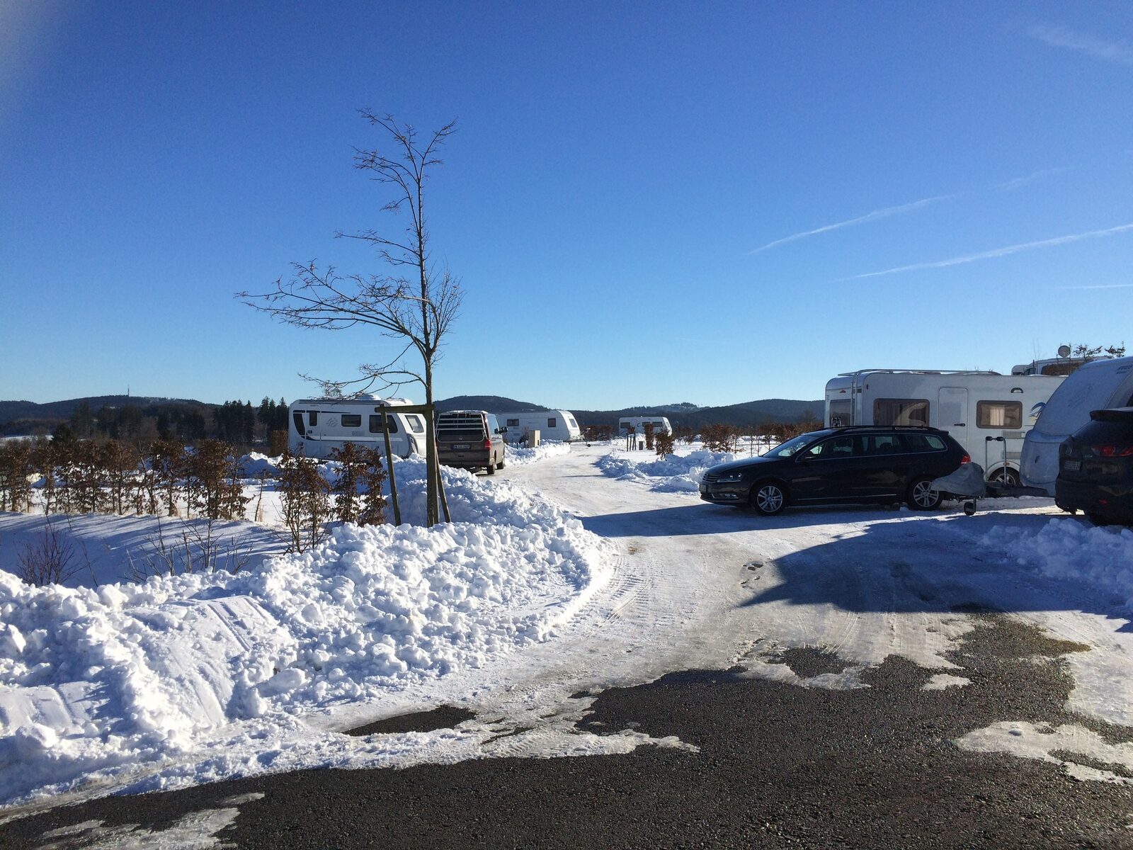 Die am Hang gelegenen Kategorie D Stellpkätze mit der grandiosen Aussicht auf die Sauerländischen Berge befinden sich auf den höheren Terrassen.